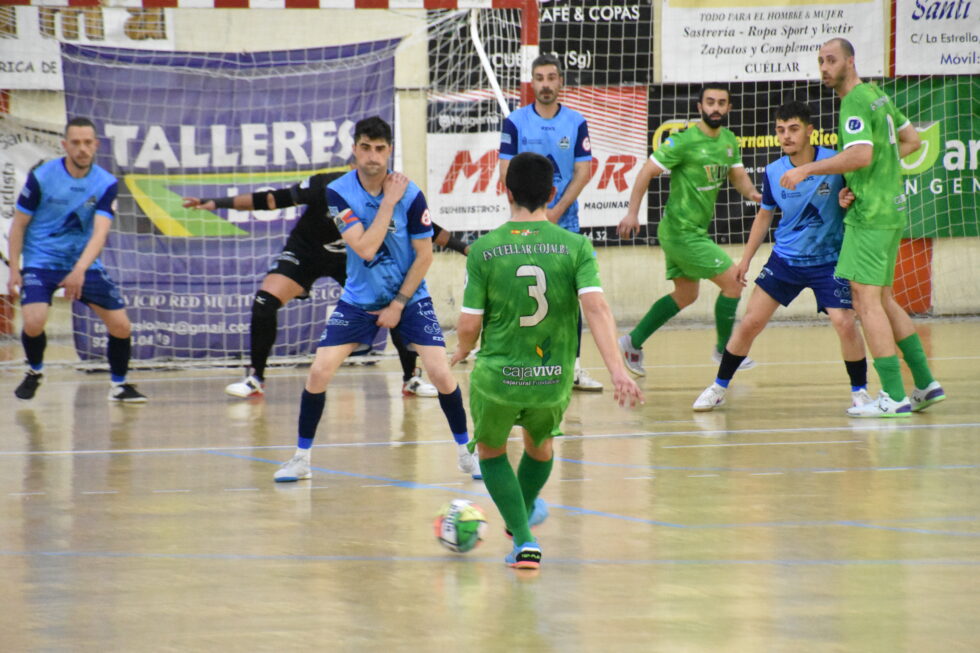 En la segunda mitad los de Cuéllar aumentaron la intensidad ante un rival que cada vez se prodigaba menos en ataque, centrándose exclusivamente en labores defensivas. Al minuto de la reanudación Sergio probó a Jairo. En el 24 una buena jugada colectiva local dejaba solo al segundo palo a Pablo que, sin oposición, remató por encima del larguero. En una de las pocas acciones ofensivas visitantes Cano despejó el tiro de media distancia de Rodríguez, en el 28. Acto seguido Javi se plantó ante Jairo pero, tras superarle remató fuera de los tres palos. El que perdona lo paga y, así le pasó al equipo de Plaza, puesto que en un minuto más tarde, un error defensivo dejaba solo a Guille para hacer el 1-2.